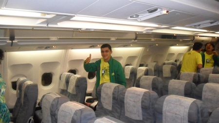 No interior do avião que o levou para Madrid