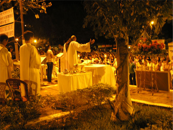 A missa começou por volta das 19h30. Um conjunto musical em cima de um carro de som fez a abertura do ato religioso. Foi lido um texto introdutório por Selma Santos, lembrando que há um ano foi cruelmente assassinado Almir Neto, na madrugada do dia 22 de dezembro de 2008.