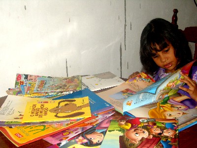 Porém, perde a timidez quando recebe um livro como presente. Ela demonstra através do brilho dos olhos e do sorriso extenso que está prestes a viajar no mundo histórias infantis"
