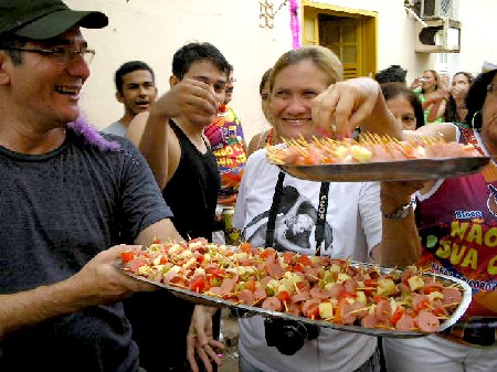 Os irmãos Marcelo e Cristina servem o tira-gosto Sacanagem