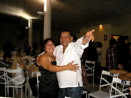 O casal Gilson Pacheco e Joana Lima passavam de mesa em mesa,