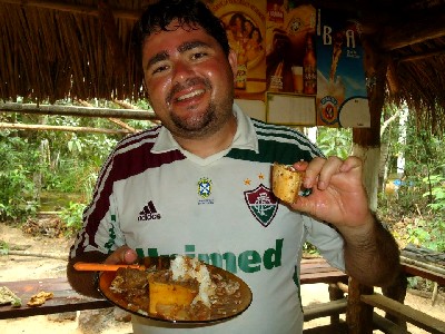 Um fogão de lenha passou a ser o serv-self de chambari, galinha caipira arroz branco e farinha sertaneja. Bom, um brejo, um barracão de palha, e uma daquela chuva fininha para ornar ainda mais o cenário. Lógico e mais duas loiras para completar. A gelada e a quente.
