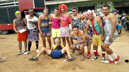 No domingo de carnaval, um grupo de amigos acordou empolgado, colocaram as perucas, os saltos altos e as minissaias para uma partida de futebol.