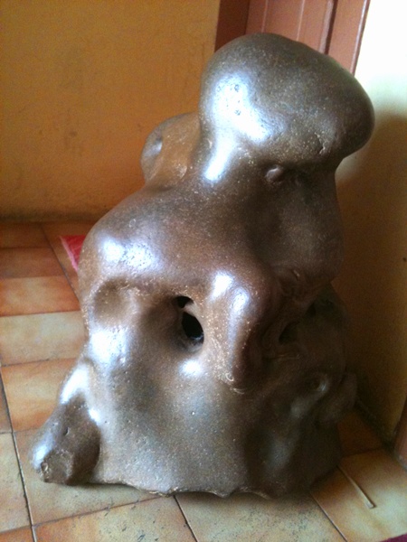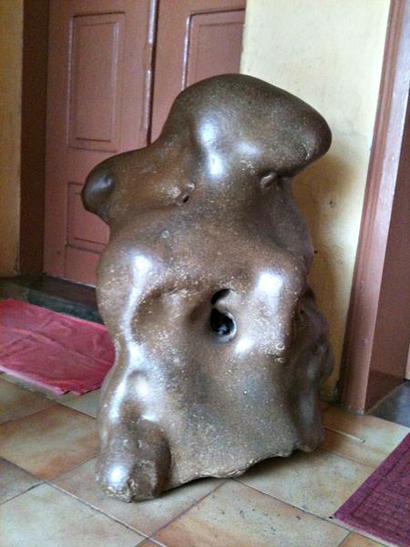 O TB voltou a casa da dona Oclair do Moreno, a pedra é realmente arredondada, para ser meteorito teria que ser áspera, e no interior não vimos o vidro fosco enbranquiçado, recomendado pelo geólogo Borges. Mas que é uma pedra bonita, isso ela tem de sobra.