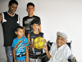 O convidado para entregar a bola aos representantes da meninada foi o senhor Pedro Salomão, de 91 anos, alfaiate aposentado residente à rua da Feirinha.