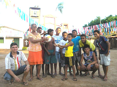 A convidada para fazer a entrega da bola foi a moradora mais antiga e também a mais idosa do bairro, a senhora Ana Maria, de 85 anos, mais conhecida como dona Delícia. A criançada agradeceu e bateu palmas.