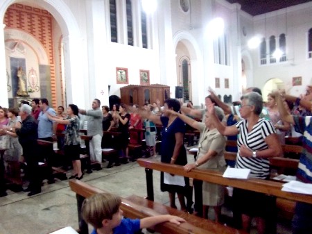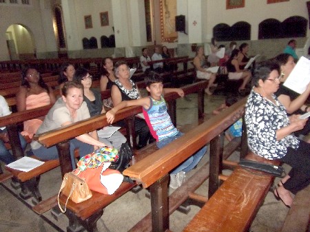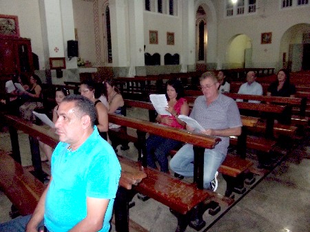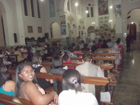 No fundo Raimunda (vermelho) e Helena (azul)Dona Delma, Zeile e amigas
